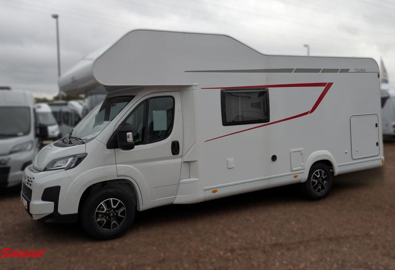 - Tourer A Basis Paket (Dachhaube Midi-Heki 700 x 500 mm über Sitzgruppe, Sonnenmarkise matt Schwarz 4,50 x 2,50 m, Fahrradhalterung für vier Räder, Insektenschutztür, Isofix für 2 Plätze, Heckgaragentür Fahrerseite, Ausstellfenster Alkoven Beifahrerseite inkl. Verdunklungsrollo und Insektenschutz, abwassertank-isoliert-und-manuell-elektrisch beheizt)