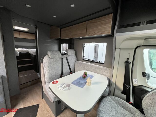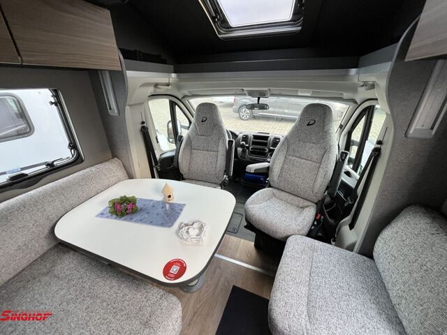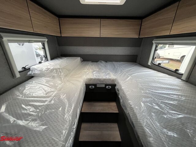 - Family-Paket T 6817, 7057 EB (Wohnraumtür mit Fenster inkl. Verdunkelung und Zentralverriegelung (inkl. Fahrerhaustüre), Verdunklungsjalousien im Fahrerhaus, Vorbereitung für Radiosystem inkl. Soundpaket im Fahrerhaus, Light Moments: Indirekte Ambientebeleuchtung über den Dachstauschränken, Light Moments: Indirekte Wandflächen-Ambientebeleuchtung, Light Moments: Küchenrückwand beleuchtet, Light Moments: Indirekte Beleuchtung im Badezimmer mit beleuchteter Duschkonsole, Light Moments: Eingangsmodul mit indirekter Beleuchtung, Light Moments: Verkleidete Sitztruhenwange mit indirekter Beleuchtung, Gemütliche L-Sitzgruppe mit freistehendem, absenkbarem Tischfuß und 2 integrierte 3-Punkt-Gurte, Bettumbau Einzelbetten zu Doppelbett)