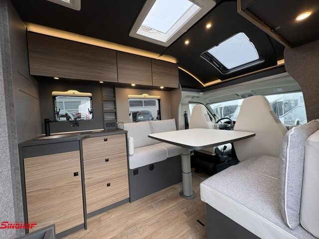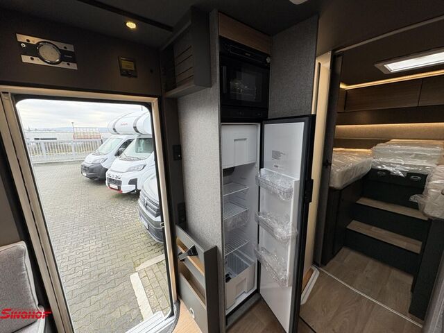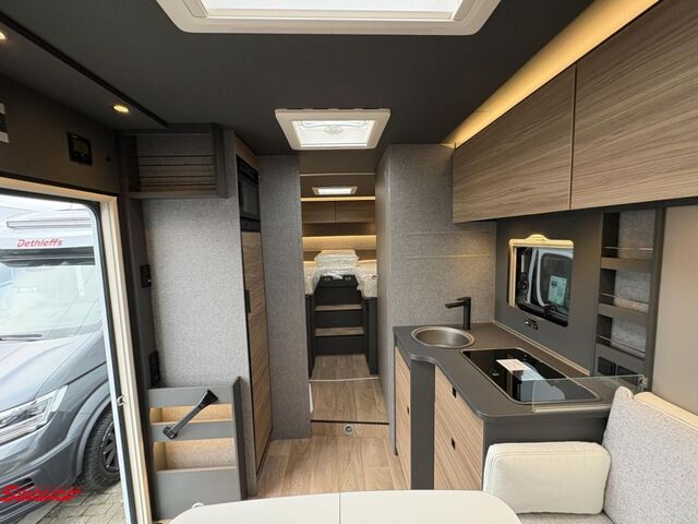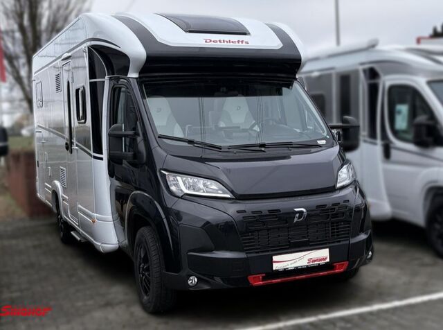 - Active-Paket T 7057 EBL (Wohnraumtür mit Fenster inkl. Verdunkelung und Zentralverriegelung (inkl. Fahrerhaustür), Verdunklungsjalousien im Fahrerhaus, Light Moments: Indirekte Ambientebeleuchtung über den Dachstauschränken, Light Moments: Indirekte Wandflächen-Ambientebeleuchtung, Light Moments: Küchenrückwand beleuchtet, Light Moments: Indirekte Beleuchtung im Badezimmer mit beleuchteter Duschkonsole, Light Moments: Eingangsmodul mit indirekter Beleuchtung, Bettumbau Einzelbetten zu Doppelbett, Außenfarbe Chassis Schwarz Metallic, Außendesign GT (Heckleuchtenträger mit schwarzem Diffusor, erweiterte Beklebung, Skidplate "rot"), Integrierte Einlinsen Rückfahrkamera, Vorbereitung SAT-Anlage, Vorbereitung Dach-Klimaanlage, Vorbereitung Solar, Duschrost, Dethleffs Naviceiver inkl. DAB+, Truck Navigation, Wireless Apple CarPlay und Android Auto, Textilleder-Wohnwelt Heron, Fenster im Badezimmer)