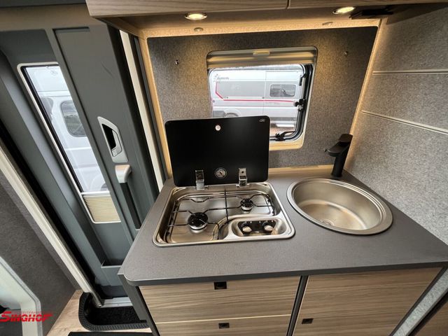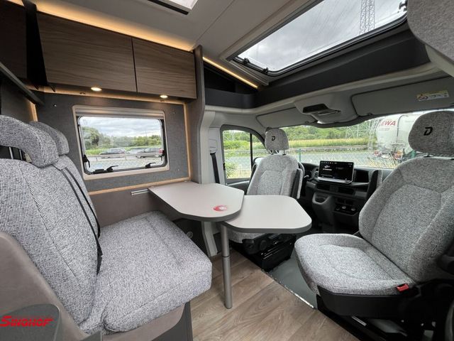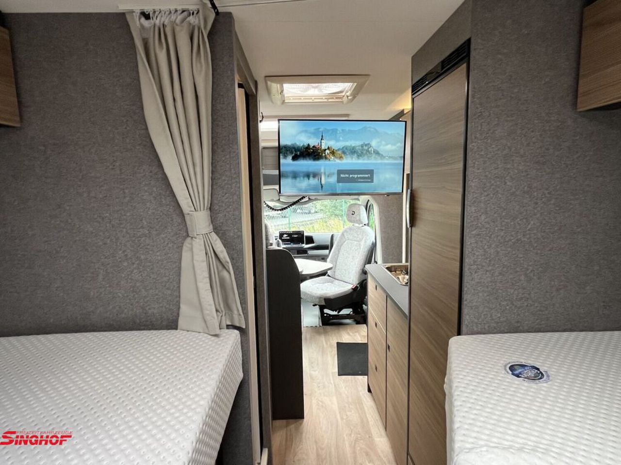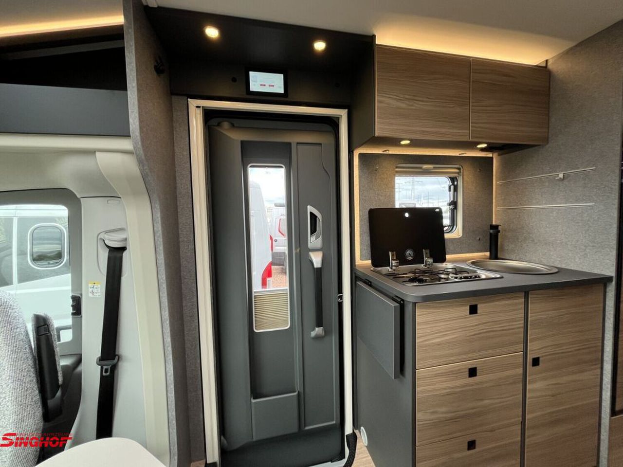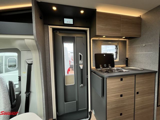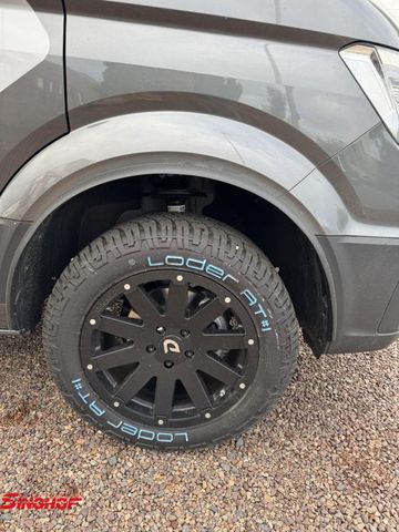 - First Edition Paket (Alufelge Hanma 18 Zoll schwarz matt, LoderTire AT 255/55 R18 (M+S Schneeflocke) inkl. Radkastenabdeckung VA, Höherlegung Vorder- und Hinterachse, LED Lightbar T-Haube, Verdunklungsjalousien im Fahrerhaus, Wohnraumtür mit Fenster inkl. Verdunkelung und Zentralverriegelung (inkl. Fahrerhaustür), Dachlüfter mit Ventilator, Doppelverglaste Rahmenfenster mit Verdunklung & Mückenschutz, Cassettenmarkise Omnistor 4.0 m inkl. LED Beleuchtung (manuell), Dachreling, Aufstiegsleiter für Dachreling inkl. Querträger, 2. Aufbaubatterie Dual Battery System (Lithium), 168 Ah, Light Moments: Indirekte Ambientebeleuchtung über den Dachstauschränken, Light Moments: Indirekte Wandflächen-Ambientebeleuchtung, Light Moments: Verkleidete Sitztruhenwange mit indirekter Beleuchtung, Light Moments: Fensterverkleidung im Wohnraum beleuchtet, Light Moments: Küchenrückwand beleuchtet, 5G WLAN Router inkl. 4x4 Dachantenne mit 32 Smart TV inkl. Flachbildschirmhalter, Raumhoher Kompressor Kühlschrank mit separatem Frosterfach (131 l), FirstEdition Außendesign (Bi-Color lackierung T-Haube, schwarze Kantenleisten), Außenlackierung Aufbau: Grau, Außenfarbe Chassis: Indiumgrau Metallic, Klimaanlage AirCare Climatic, LED-Hauptscheinwerfer mit LED-Tagfahrlicht, Licht- und Sicht-Paket, Vorbereitung für VW Connect und VW Connect Plus, Außenspiegel el. verstell- und beheizbar und integriertem Blinker, Assistenzpaket Advanced inkl. automaitscher Distanzregelung (ACC), intelligenter Speed-/ Travel-/ Lane-Assist, Navigationssytem Discover Pro mit 12" Touch-Farbdisplay, Differentialsperre, Berganfahrhilfe / Abfahrhilfe, Handschuhfach abschließbar und beleuchtet)