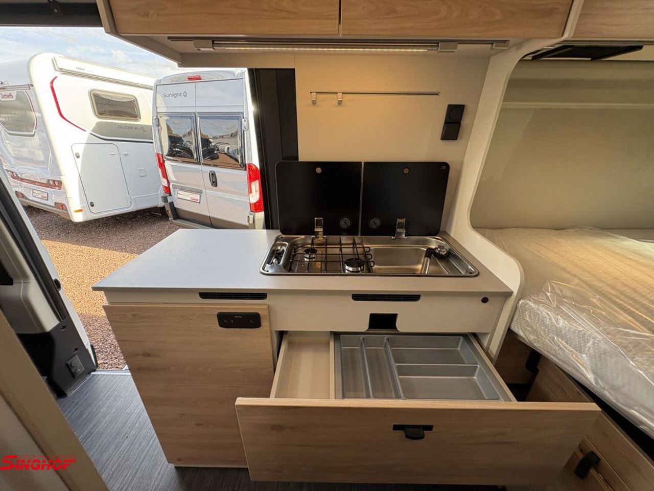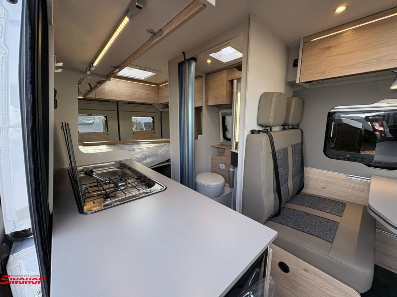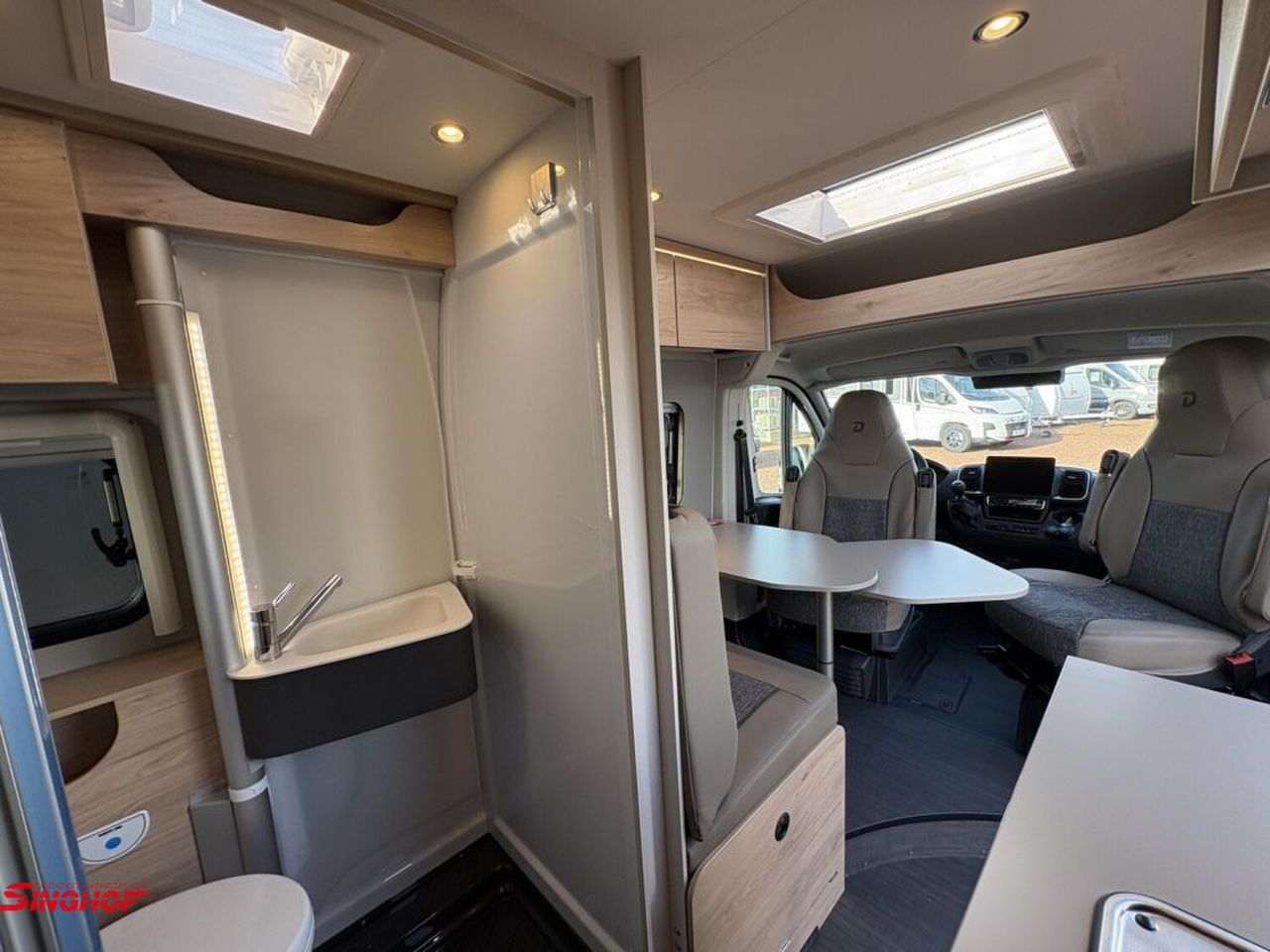 - 95 Jahre Paket (600 DK / DS / DR) (Pack Easy Driving Plus (New Pack Safety, Stoßfänger in Wagenfarbe, Skid Plate Schwarz, Nebelscheinwerfer, Adaptiver Tempomat ACC), Pack Vision Level 2 (Seitenspiegel anklappbar, Parksensoren hinten, Totwinkelassistent), Automatische Klimaanlage, Digitale Rückfahrkamera, Digitales Cockpit, Radio Navigation mit 10 Zoll Display, Wireless Phone Charger, Außenbeklebung Full, Vorzeltleuchte, Indirekte Beleuchtung, LED-Lichtröhre in der Küche, Vorbereitung Solarmodule, Truma Bedienteil CP Plus, 230-V-Steckdose im Oberschrank Bug links (Sitzgruppe), 12-V-Steckdose im Heckbereich links unten, Zusätzliche Doppel-USB-Steckdose im Bug links, Drehplatte für Tischerweiterung, Fenster mit Fliegenschutz und Verdunklungsrollo im Heck links, Markise 3,75 m (600))