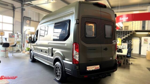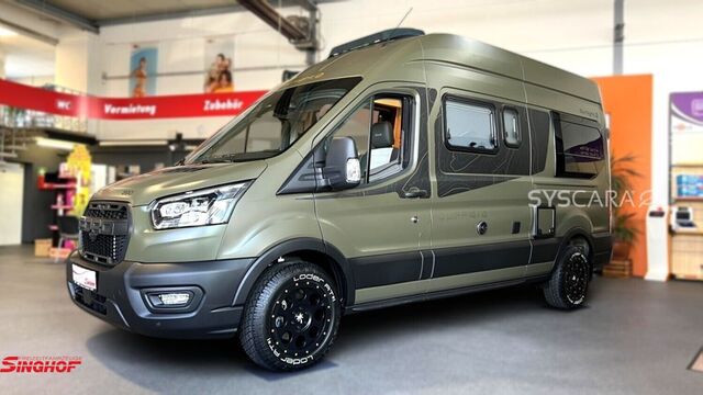 - Ausstattung CLIFF 4x4 Green Trek 590 (Ford Transit 3.500 kg | 2.0 | 122 kW | 165 PS | EURO 6 | 6-Gang-Schaltgetriebe | Allradantrieb, Yellow Olive, Beklebung CLIFF 4x4 Green Trek, Wohnwelt Adventure, Seitliche Schlaferweiterung mittels Verbreiterungsbacken im Heck, Rahmenfenster, Beide Hecktüren mit Ausstellfenster (inkl. Rollo), Dachstauschrank Heck umlaufend, Markise 3,5 m (schwarz), Klimaanlage inkl. Staub- und Pollenfilter, Stoßfänger lackiert, Nebelscheinwerfer, Scheinwerfer mit statischem Abbiegelicht, Panoramadachhaube 70 x 50 cm, Duschausstattung, Fenster im Bad, Kleiderstange in der Nasszelle, Breite Einstiegsstufe, Drehplatte für Tischerweiterung an der Sitzgruppe, 17" Offroadbereifung Delta, Trail Kühlergrill)