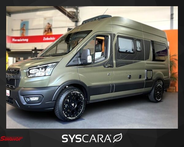 - Ausstattung CLIFF 4x4 Green Trek 590 (Ford Transit 3.500 kg | 2.0 | 122 kW | 165 PS | EURO 6 | 6-Gang-Schaltgetriebe | Allradantrieb, Yellow Olive, Beklebung CLIFF 4x4 Green Trek, Wohnwelt Adventure, Seitliche Schlaferweiterung mittels Verbreiterungsbacken im Heck, Rahmenfenster, Beide Hecktüren mit Ausstellfenster (inkl. Rollo), Dachstauschrank Heck umlaufend, Markise 3,5 m (schwarz), Klimaanlage inkl. Staub- und Pollenfilter, Stoßfänger lackiert, Nebelscheinwerfer, Scheinwerfer mit statischem Abbiegelicht, Panoramadachhaube 70 x 50 cm, Duschausstattung, Fenster im Bad, Kleiderstange in der Nasszelle, Breite Einstiegsstufe, Drehplatte für Tischerweiterung an der Sitzgruppe, 17" Offroadbereifung Delta, Trail Kühlergrill)